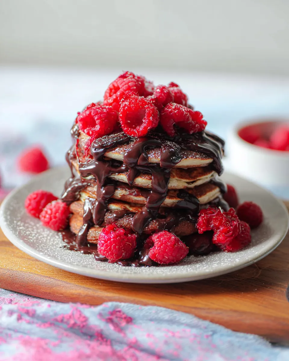 - Serve immediately: Stack, dust with powdered sugar, drizzle with maple syrup or chocolate sauce, and scatter extra raspberries for color and brightness.