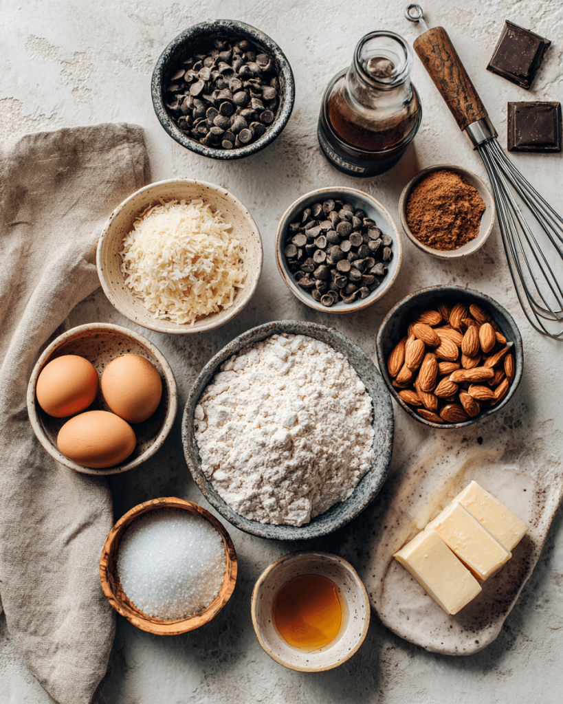 - Kosher salt – Balances sweetness and makes the almond and chocolate flavors pop.