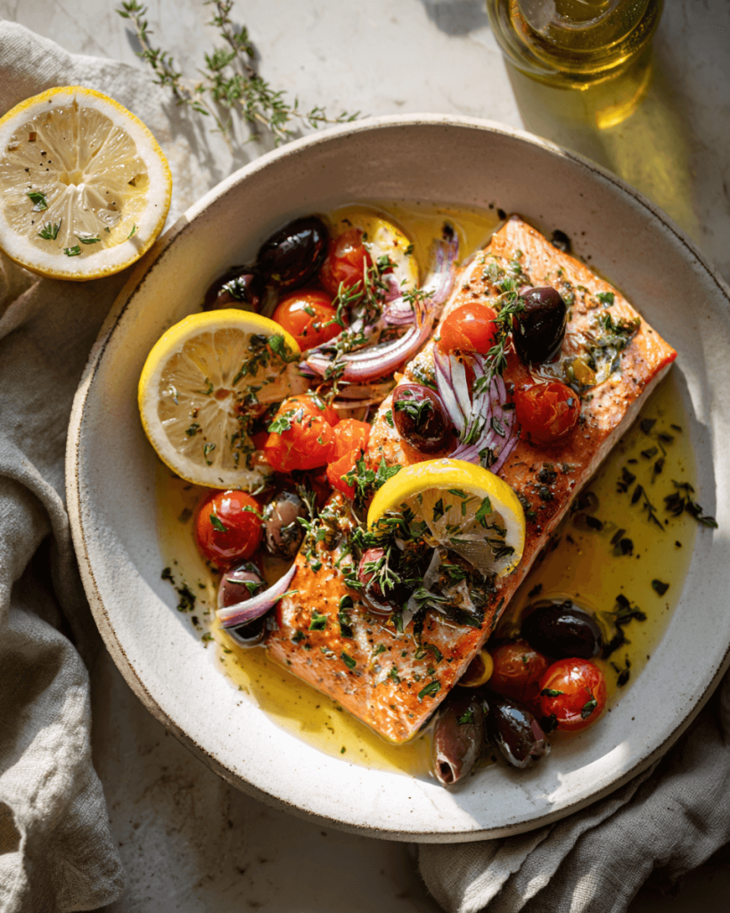I first fell in love with Mediterranean flavors while experimenting with simple, healthy dinners at home — dishes that rely on fresh ingredients rather than complicated techniques. The combination of olive oil, garlic, and lemon never disappoints. If you love the idea of fast, flavorful dinners, you might also enjoy exploring other fresh-inspired recipes like these easy weeknight salmon ideas from Olive & Mango for more Mediterranean-style inspiration.