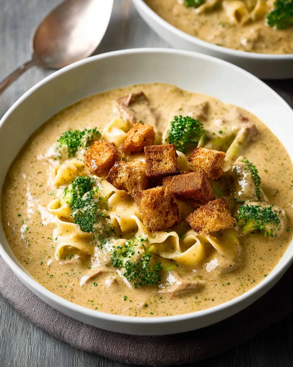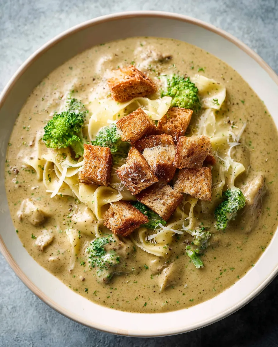 There’s something about a warm bowl of broccoli-and-cheddar soup that feels like a hug for your insides—bright veggies, creamy cheese, and that little crunch of garlic croutons on top. I make this whenever I want something comforting but not fussy: it comes together quickly, stores beautifully, and tastes like a restaurant staple made in your own kitchen.