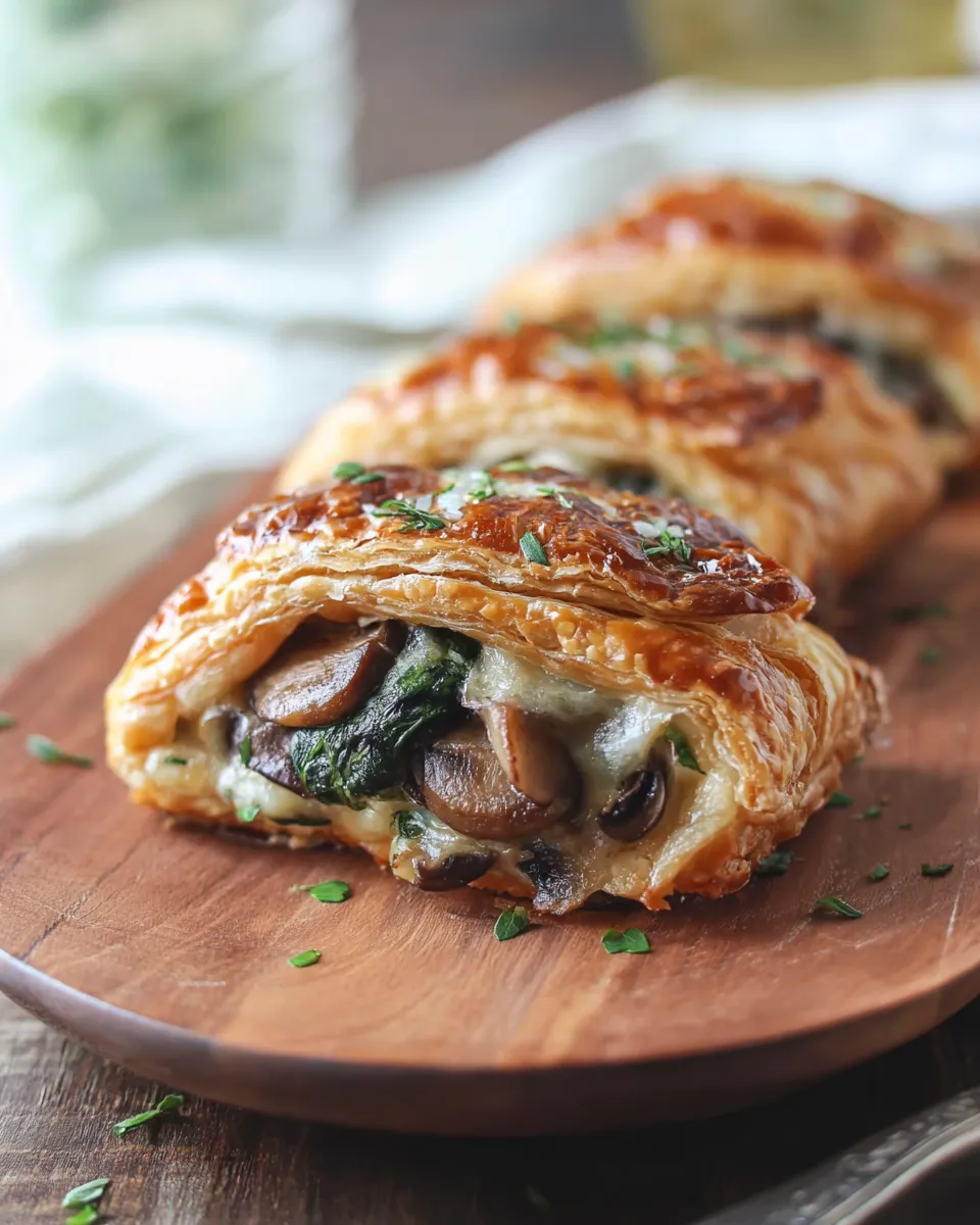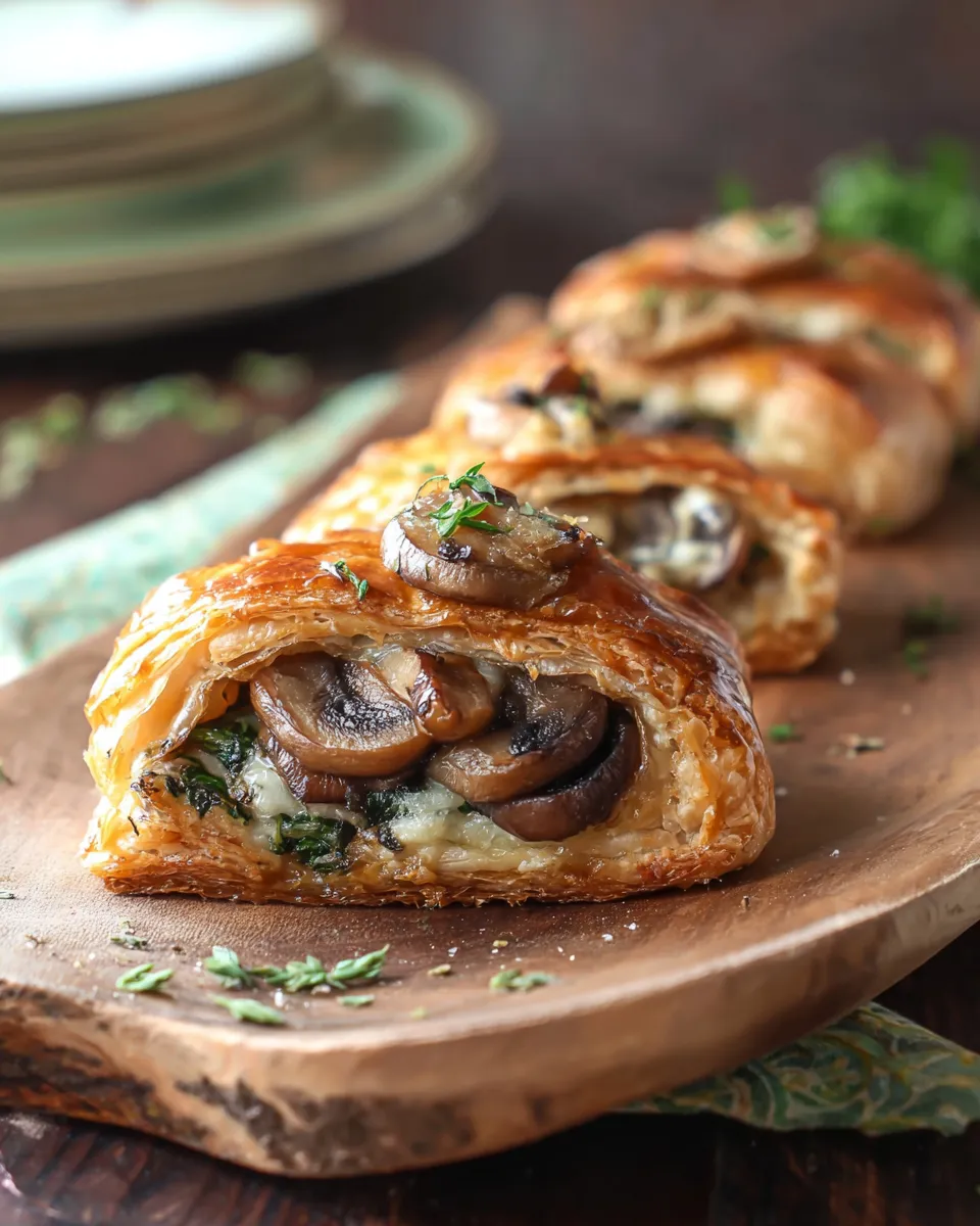 Keywords: Cheesy mushroom spinach puff pastry, mushroom spinach pastries, vegetarian appetizer, puff pastry bites, weeknight snack, cheese-filled pastries, spinach recipes