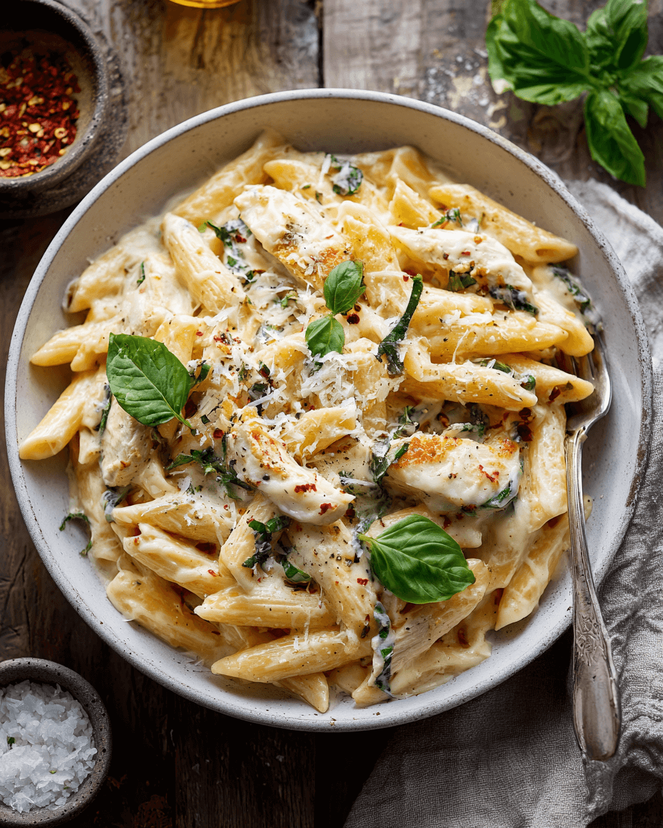 - Make it vegetarian: Skip the chicken and bacon, and add sautéed mushrooms, zucchini, or bell peppers. The creamy sauce remains indulgent.