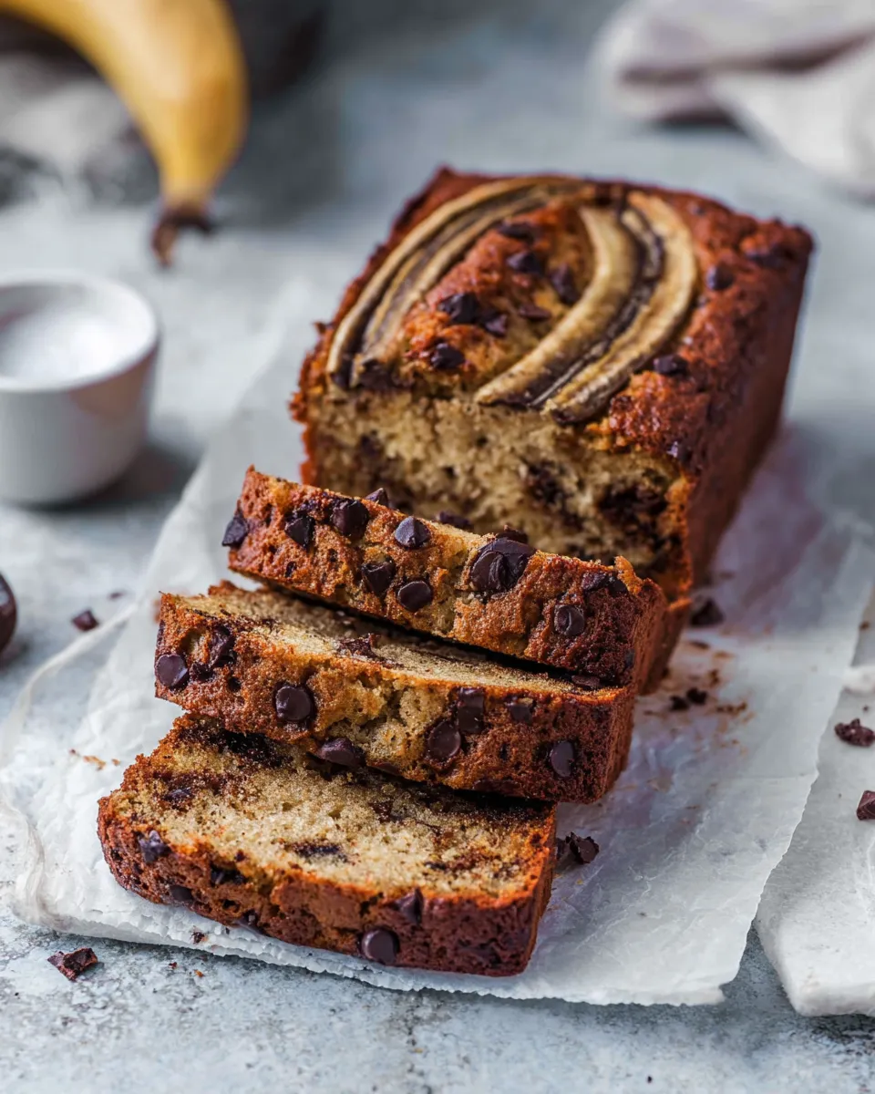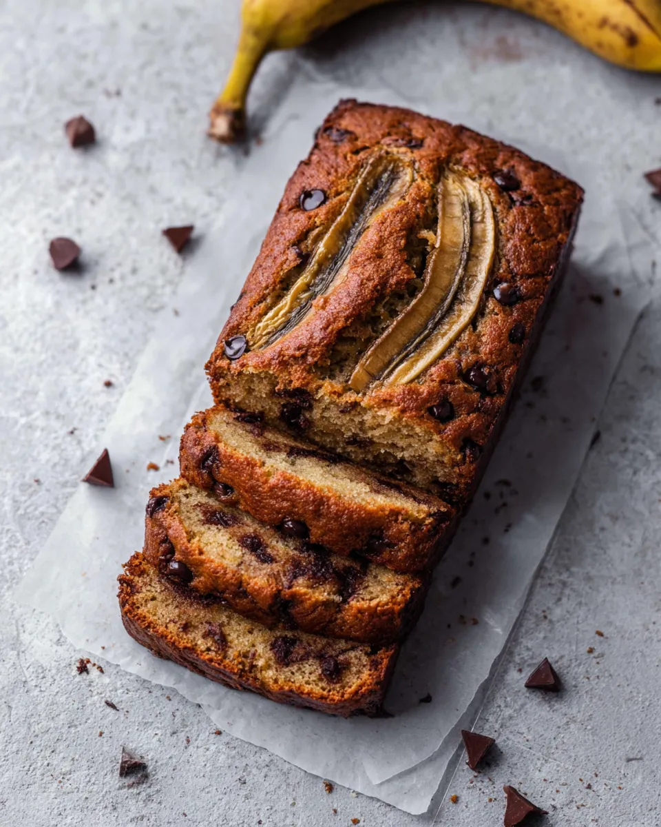 Warm gooey Chocolate Chip Banana Bread thatll vanish fast a simple failproof loaf recipe for moist slices perfect for breakfast or sharing