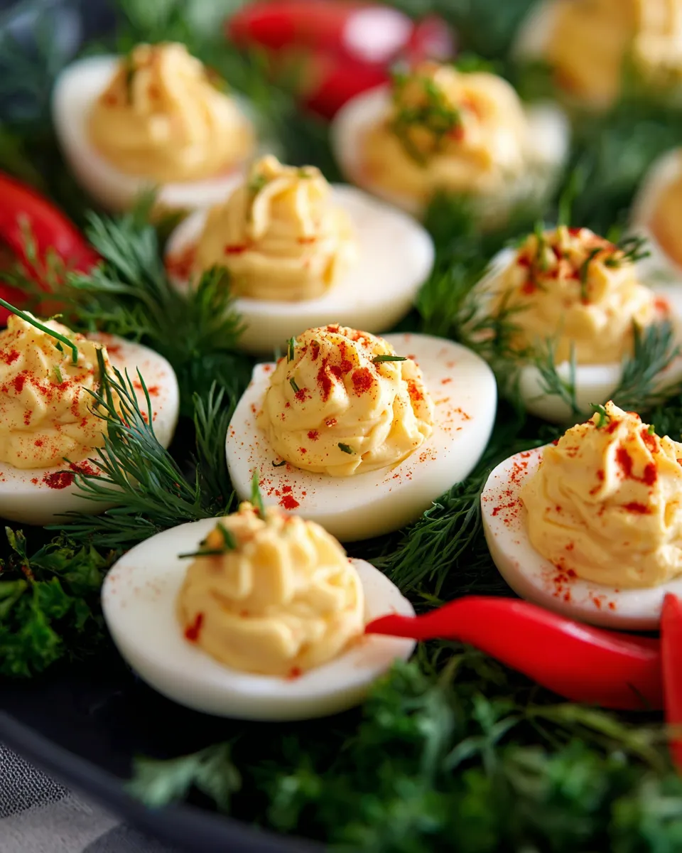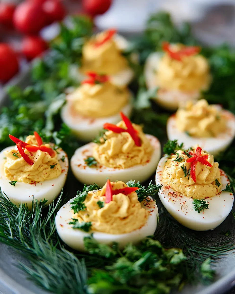 Yes, you can prepare hard-boiled eggs and the yolk filling ahead. Store the filled eggs in a single layer in an airtight container in the fridge for up to 24 hours. If you’ve already filled them, keep them uncovered or loosely covered to prevent sogginess, and add the paprika and garnishes just before serving.