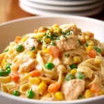 In conclusion, the Classic Chicken Pot Pie Pasta is a delightful twist on a beloved dish that combines the warmth of chicken pot pie with the ease of pasta. It’s an ideal answer for busy weeknights and is filled with wholesome ingredients. Try the recipe today, and don’t forget to share your experience in the comments below. Subscribe for more delicious updates!
