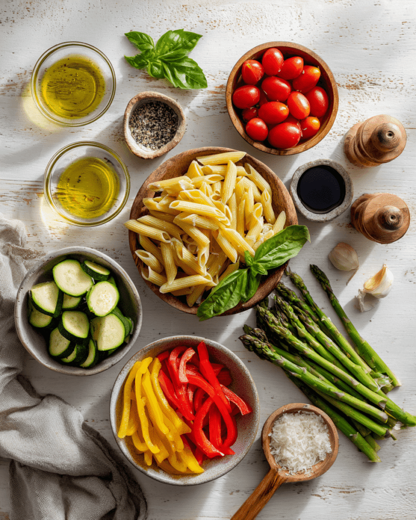 One of the best parts about pasta primavera is its flexibility—you can swap veggies in and out depending on what’s in season or what you already have at home. Here’s a solid starting point to make a fresh and flavorful dish:
