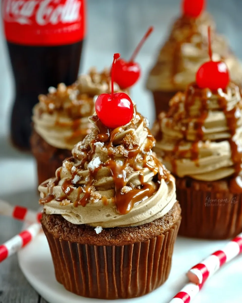 Coke Float Cupcakes fizzy cola cake vanillainfused base sodafoam frosting easy DIY steps bake 3035 min chill garnish w cherry crowdpleaser