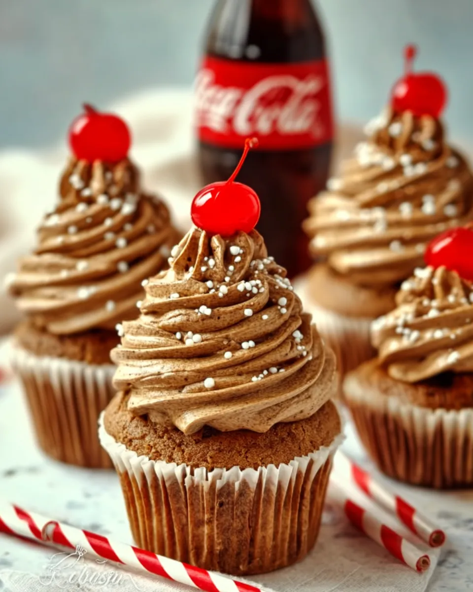 They’re also easy to make: simple pantry ingredients, a quick cola reduction to punch up the flavor, and a soft, pillowy frosting. If you love nostalgia and texture—fizzy notes, sweet cream, and a little cherry on top—this recipe will be on your repeat list.