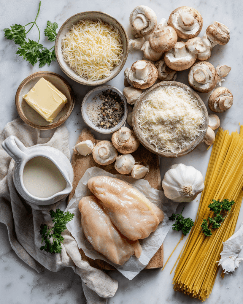 Ingredients for Creamy Mushroom Chicken Pasta