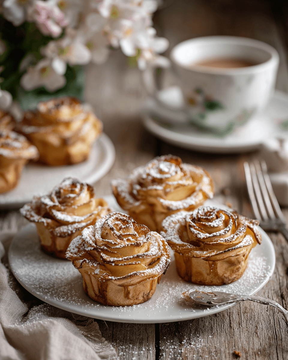 Serve warm Apple Roses with your morning coffee or afternoon tea. They’re just sweet enough to feel indulgent without being heavy—like a little pick-me-up in pastry form.