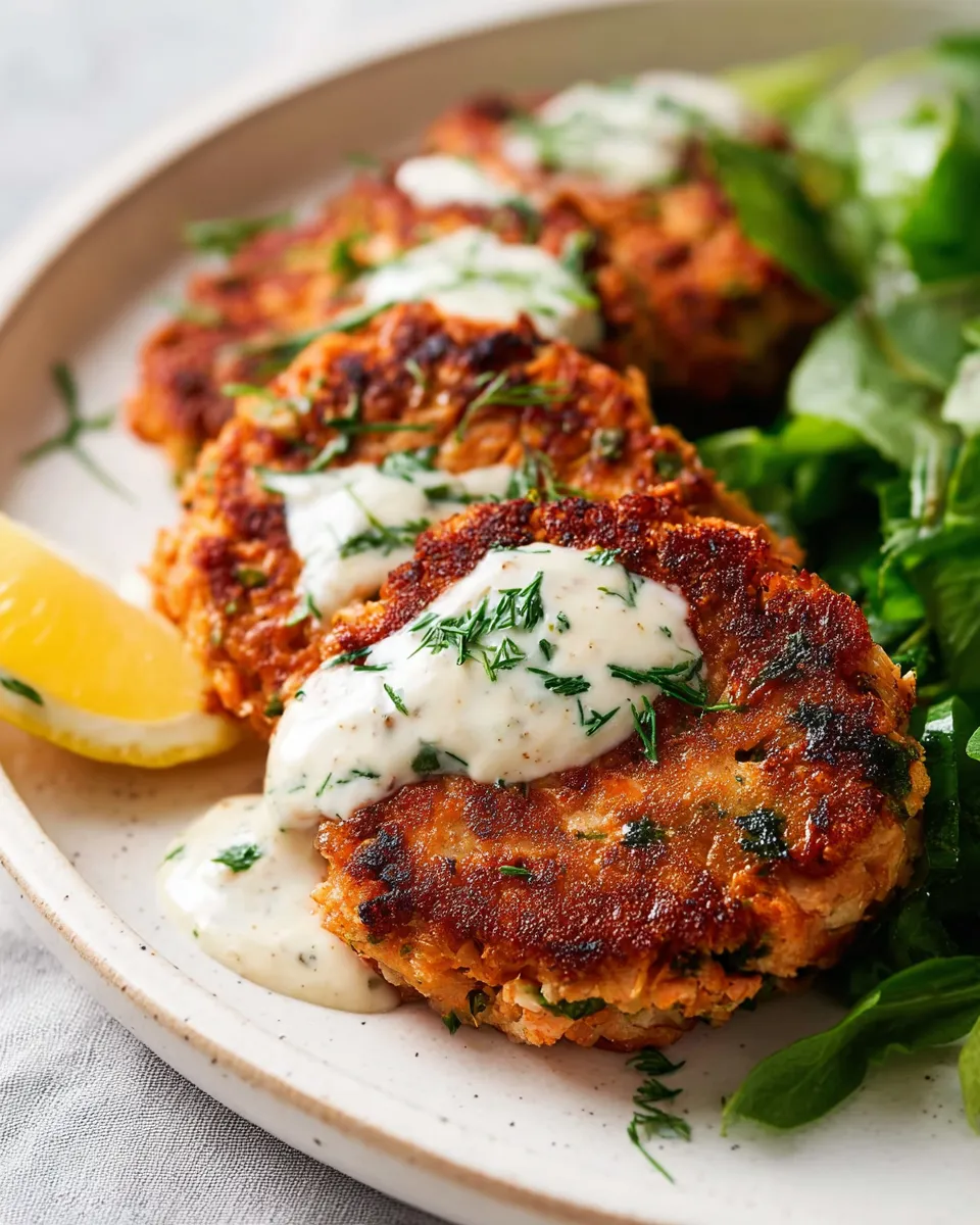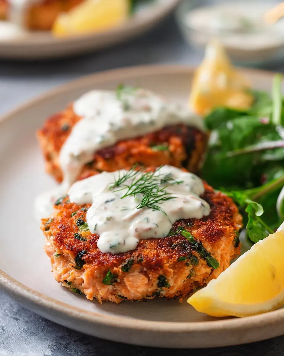 Cozy, restaurant-worthy salmon patties with a silky lemon-garlic sauce. Quick to prepare using pantry staples, perfect for weeknights and easy entertaining.