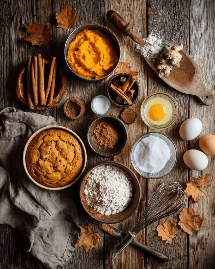 These Fall Pumpkin Muffins come together with simple pantry staples, but each ingredient plays a role in creating that tender crumb and cozy flavor. Here’s what you’ll need: