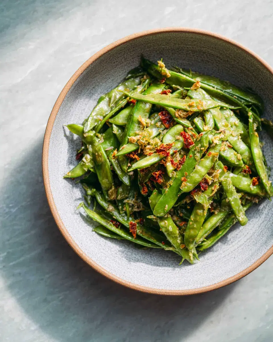 Discover a nocook snap pea salad with chili crisp crisp textures bright flavors and a fast refreshing summer bite that sparks your appetite