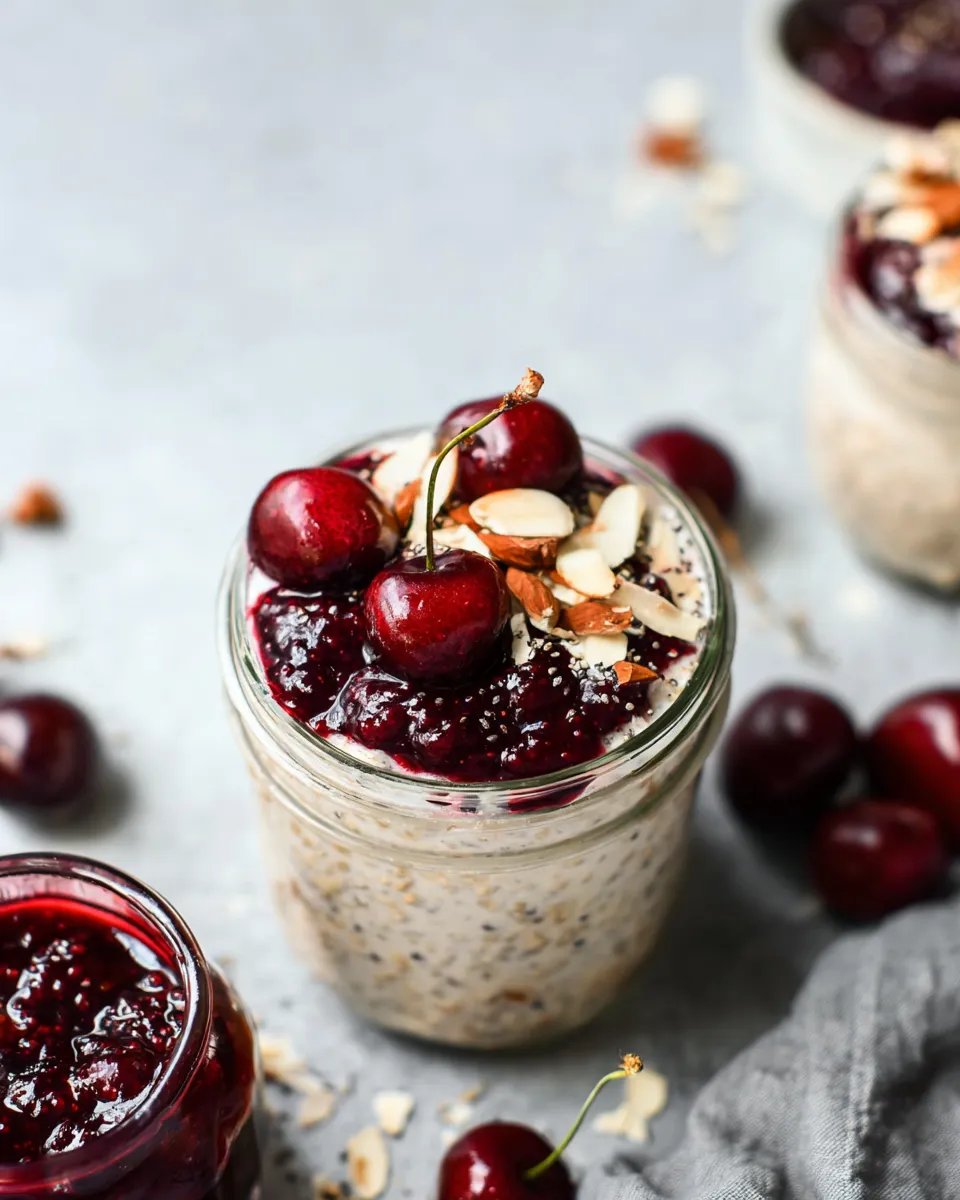 Healthy Overnight Oats featuring Cherry Chia Seed Jam Recipe