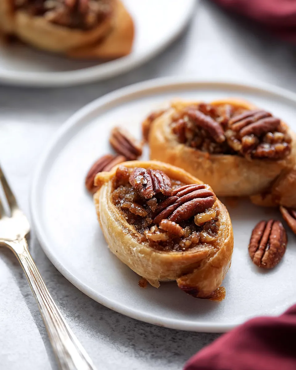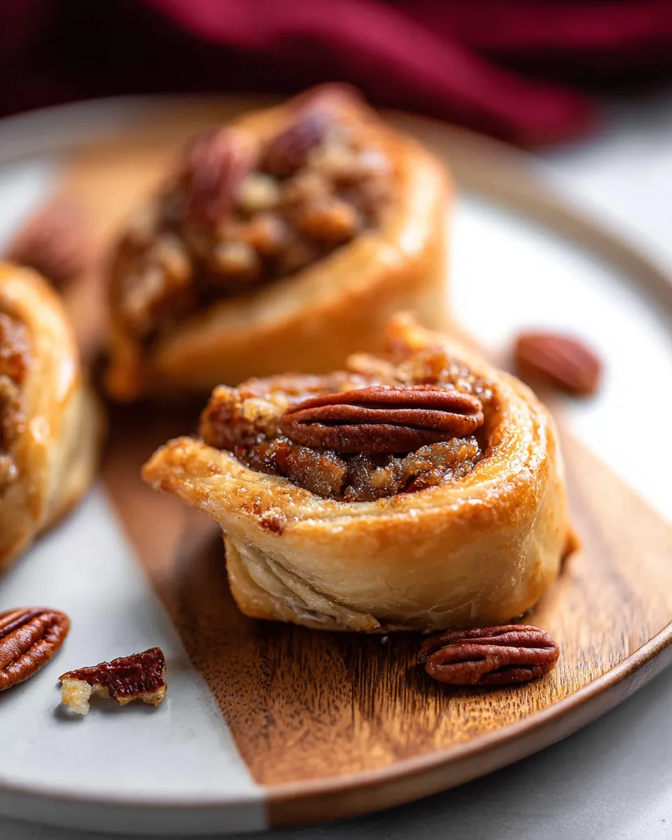 Pecan Pie Roll Ups are handheld pastries that capture the caramel-kissed warmth of pecan pie in a flaky puff pastry shell with a creamy cream cheese center and a cinnamon pecan filling.