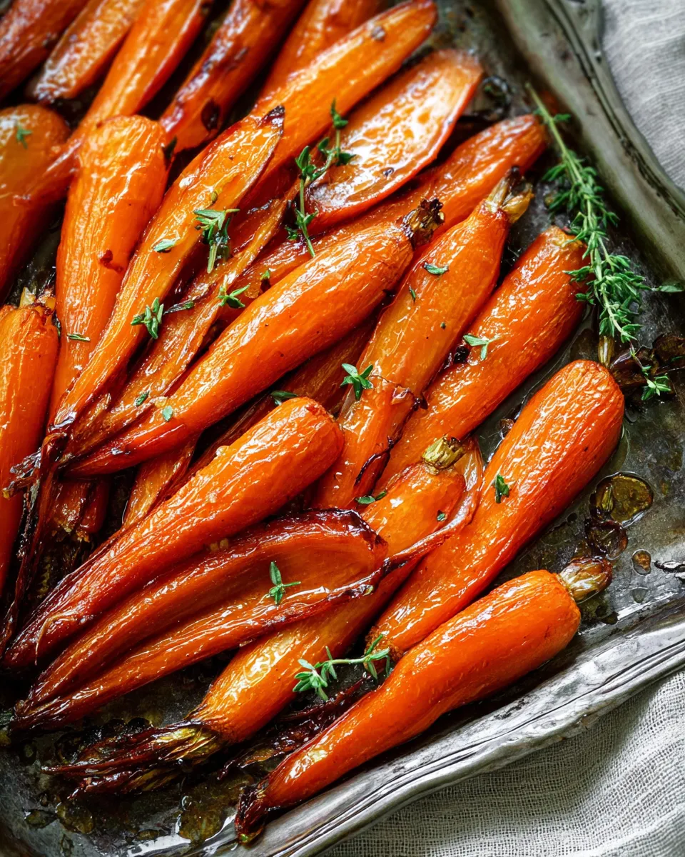 Some recipes arrive like a revelation—this is one of them. With just a handful of ingredients and one hot sheet pan, the carrots caramelize, the honey turns glossy, and fresh thyme lifts everything into something unexpectedly elegant. It’s the kind of side dish you’ll make for weeknight dinners and holiday tables alike.