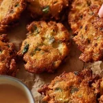Once cooked, use a slotted spoon to remove the fritters, placing them on paper towels to drain excess oil. Serve hot with your favorite dipping sauce, such as ranch or a spicy aioli.
