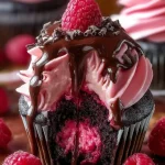 Decadent Raspberry Chocolate Lava Cupcakes with a rich chocolate cake and tart raspberry filling for the ultimate dessert experience.