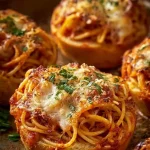 Imagine diving into a bowl made of garlic bread, filled with warm, savory spaghetti, topped generously with cheese and herbs, creating a delightful fusion of flavors and textures. This recipe for Spaghetti Garlic Bread Bowls redefines what it means to enjoy pasta, offering a unique and satisfying way to enjoy a classic favorite.