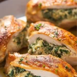 A delectable low-carb dinner option featuring chicken breasts stuffed with creamy spinach and cheese, perfect for a healthy twist on dinner.