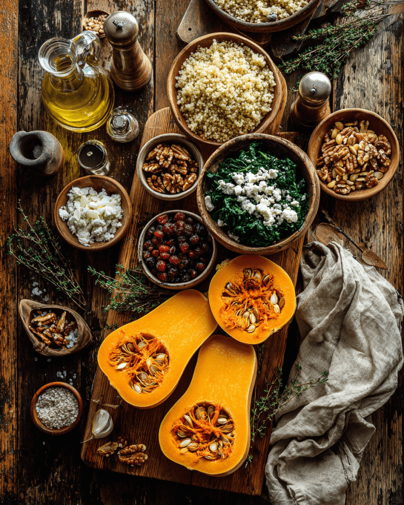Here’s everything you’ll need to make this cozy Stuffed Butternut Pumpkin, along with a few quick notes to help you get the best flavor and texture.