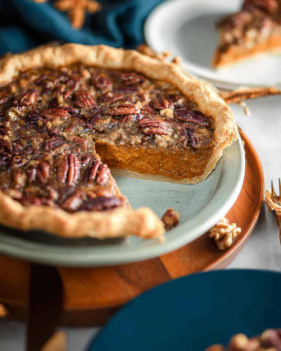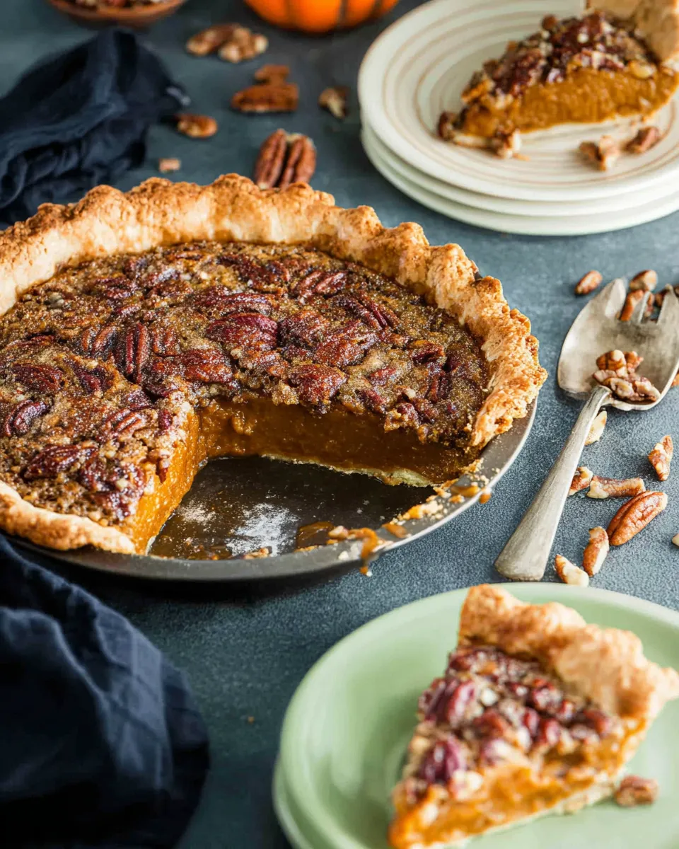 Keywords: sweet potato pie, maple pecan pie, holiday dessert, Thanksgiving pie, gluten-free option, vegan option