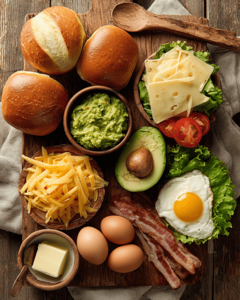 - Bacon (6–8 slices, thick-cut) – Crispy, smoky bacon balances the richness of the eggs and croissant. You can also swap for turkey bacon or plant-based alternatives.