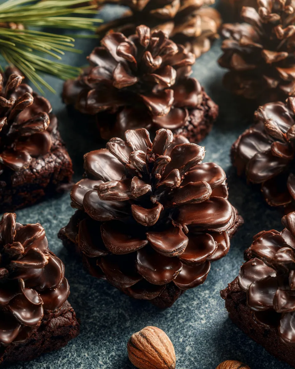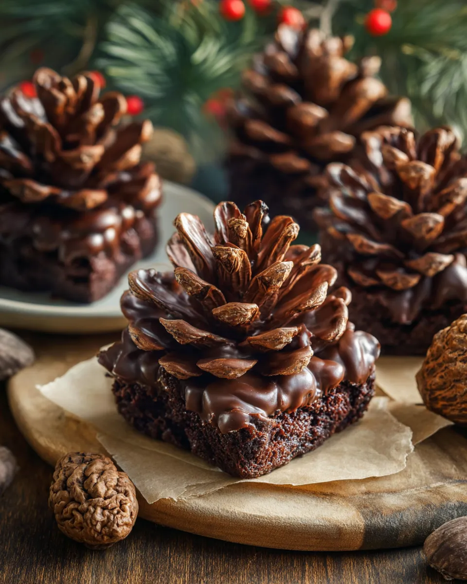 Serve these Pine Cone Brownies with a scoop of vanilla ice cream or a dollop of cinnamon whipped cream for contrast. A light dusting of cocoa powder or powdered sugar adds a snow-kissed finish that photographs beautifully.